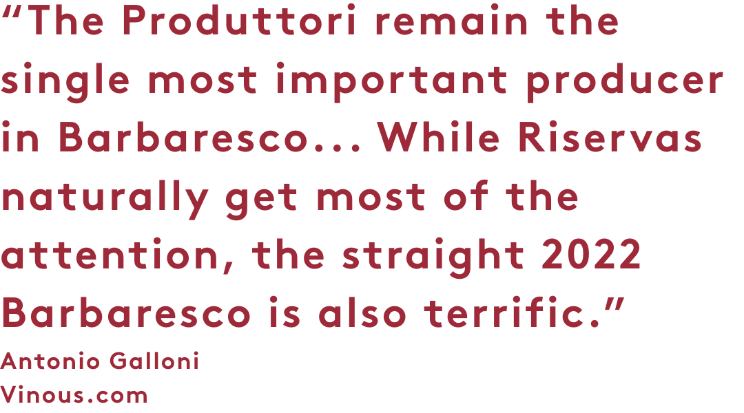 As ever, what distinguishes Produttori is not just quality, but reliability. Few wines at this level offer such a consistent articulation of place year after year, and fewer still deliver it with this degree of accessibility. The Classico continues to serve as one of the most compelling entry points to Barbaresco, both for those coming to the region for the first time and for those who return to it each vintage.